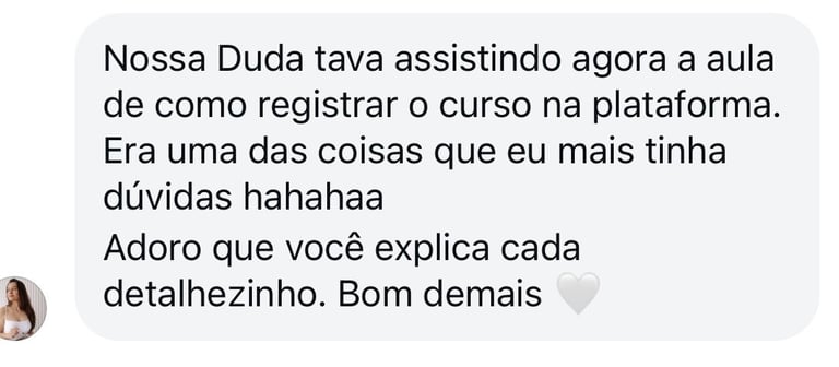 Após anos de dedicação e muito aprendizado na área beauty, criei cursos online que juntos me prestigiaram com mais de 2 mil alunas. Me especializei em construção de marcas, sejam elas pessoais ou corporativas, e levo este conhecimento unido a experiência de anos de carreira a profissionais que desejam elevar o nível e ter uma marca e negócio na área da beleza com alto valor.